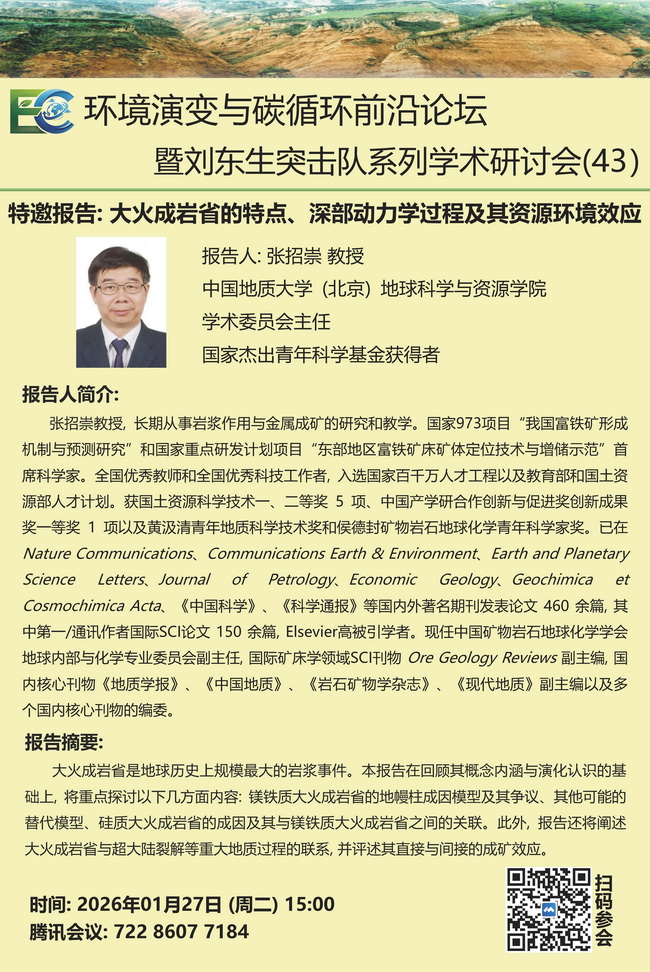 【1.27】环境演变与碳循环前沿论坛暨刘东生突击队系列学术研讨会:张招崇 教授