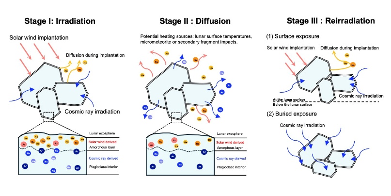 太阳风是太阳系内部传递挥发分的重要枢纽。月壤因长期暴露在太阳风中,成为保存挥发分的理想材料。然而,太阳风在注入月球表面(时)后可能会经历扩散、溅射、磨蚀等复杂过程。稀有气体(氦、氖和氩等)因其独特的化学惰性可能能作为这些复杂过程与太阳风相互作...