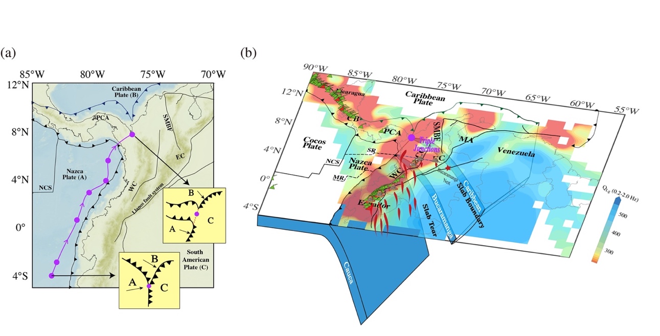 全球板块运动形成离散、汇聚和转换等板块边界及不同类型组合,塑造了多样化的构造格局。其中,任意三个板块边界交汇点称为三联点,随着板块运动而形成、发展和消亡,因此成为研究全球板块运动规律的关键。哥伦比亚及邻近区域的构造格局受到南美板块、加勒比海板块和...