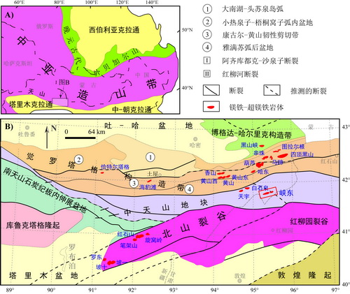 东天山和北山是整个中亚造山带南缘二叠纪镁铁-超镁铁岩体的集中分布区,这些岩体多被认为是在造山后伸展和地幔柱背景下的产物。古生代时期,中亚造山带地区以发育海盆-弧-微陆块体系为特征,弧岩浆活动极为发育,而产于岛弧背景下的阿拉斯加型岩体尚未发现和确认。阿拉斯加型岩体主要是通过岩石组合、矿物学特征和矿物化学来识别的,是指示岛弧构造背景的重要地质体,也是铂族元素矿床的重要载体。