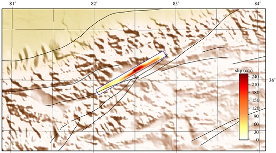Fig. 4 The map shows the projection of slip distribution on the ground