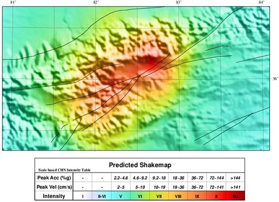 Fig.5 Predicted Shakemap calculated from slip model