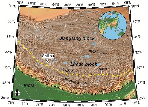 针对俯冲带是否存在高δ18O值的地幔这一科学问题,地质地球所岩石圈演化研究室刘传周副研究员利用二次离子探针对西藏赛利普中新世超钾质火山岩所携带的9个橄榄岩包体中的橄榄石进行了氧同位素研究。在印度与欧亚板块碰撞后,整个青藏高原发育有大面积的钾质-超钾质火山岩。其中,在藏南的赛利普地区(图1),中新世超钾质火山岩携带有个体非常小的橄榄岩包体。他们之前的研究表明这些橄榄岩包体来自于大陆岩石圈地幔,并遭受到了强烈的俯冲物质的交代作用(详见Liu et al., 2011, Geology, 39(10): 923-926)。这些俯冲物质的来源可能为消亡的新特提斯洋壳及其上覆的深海沉积物或者风化剥蚀后搬运至洋壳的印度陆壳物质。