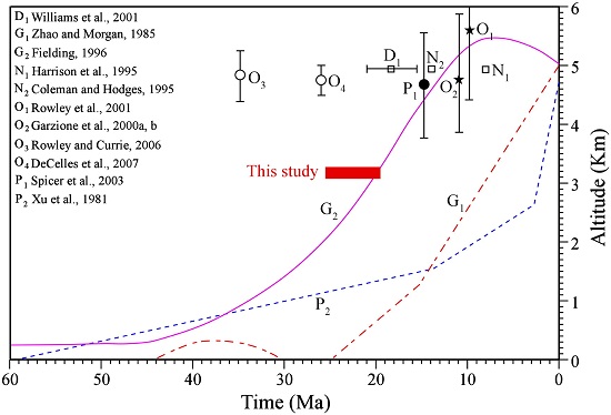 新生代以来,地球上最为显著的地貌变化就是印度与亚洲板块碰撞导致的青藏高原隆升。长期以来,学术界对于碰撞的起始时间、碰撞方式与过程以及是否存在初始高度等问题均有较大争议。研究青藏高原不同地区、不同时间的古高度,无疑是非常重要的科学问题。因为,高原古高度不仅是板块碰撞过程的表征和计量,更是联系深部岩石圈与浅表层圈演化的纽带,只有准确重建古高度,才能正确评价高原隆升机制与扩展过程及其对区域与全球气候的影响。