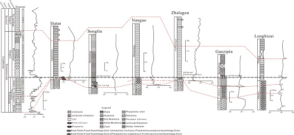 图1 寒武纪早期扬子地区从内陆架到盆地相地层对比(高清图请见原文链接)