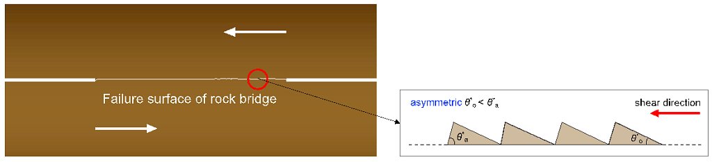 图5 “岩桥”破裂面非对称性示意图