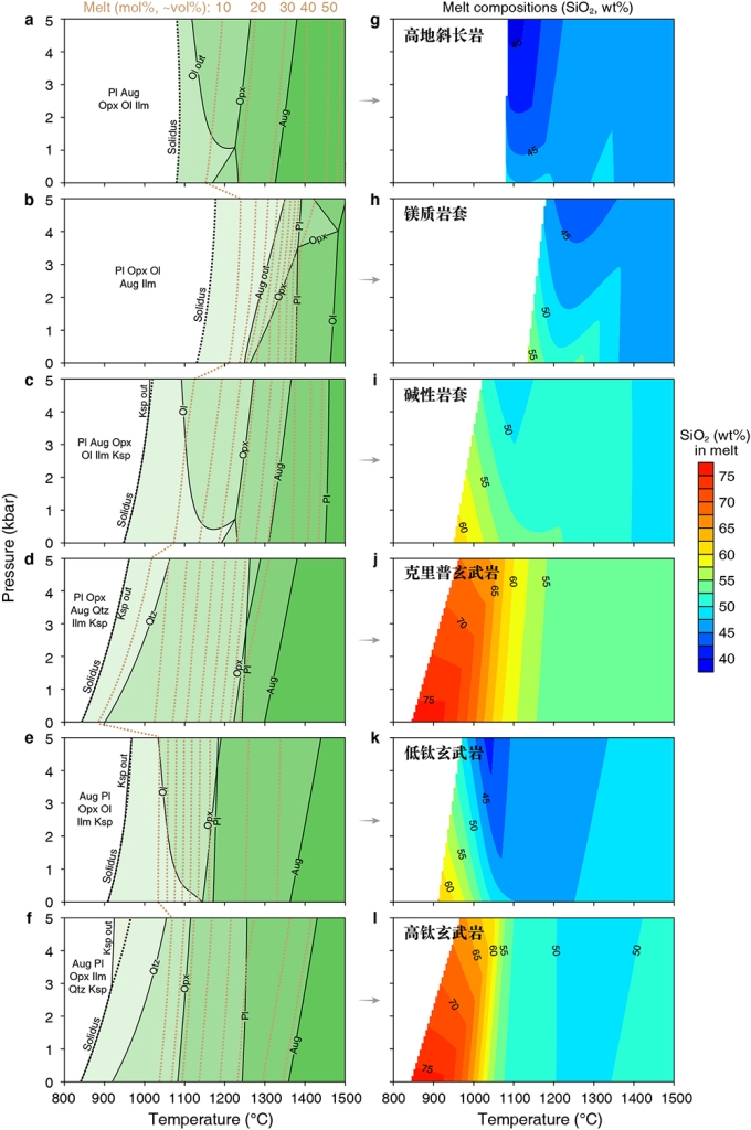 (2)只有克里普玄武岩部分熔融(~20%以内)能够形成较大规模的富硅火山建造,因此是花岗质月壳的最佳源区;