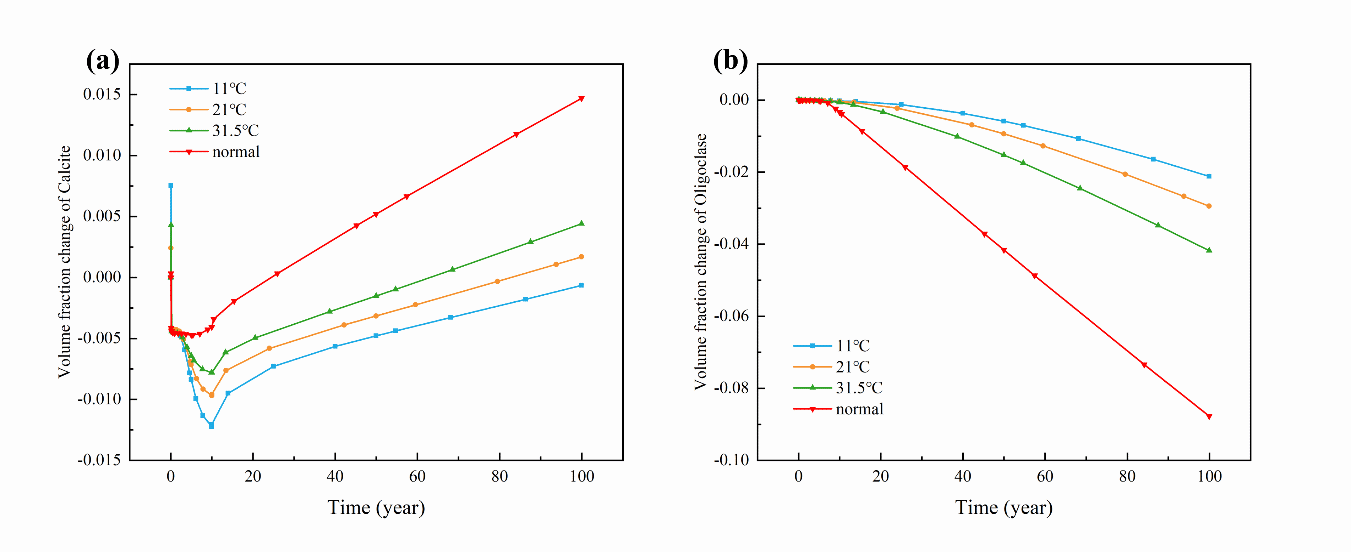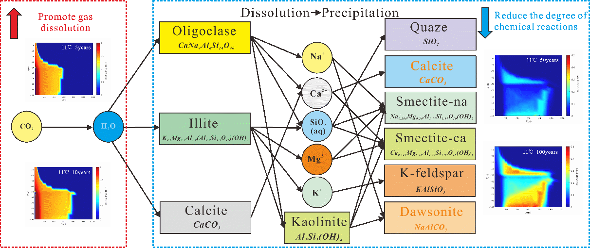 二氧化碳地下封存是“双碳”目标的重要路径之一,深层咸水层是具有巨大的封存潜力且目前最有前途的地质储存空间。二氧化碳咸水层封存的主要影响因素包括注入温度、注入速率、注入压力、注入时间等,而注入温度则是影响二氧化碳溶解度和水岩反应的关键因素,例如较低的温度会导致二氧化碳溶解度升高,但水岩反应速率降低。