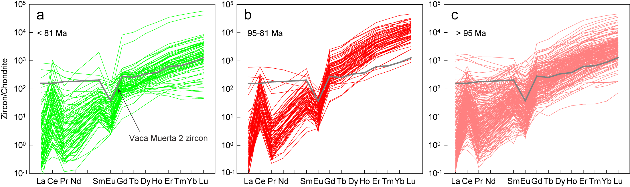 图4 塞浦路斯Troodos蛇绿岩岩浆岩中不同年龄锆石的稀土元素配分差异