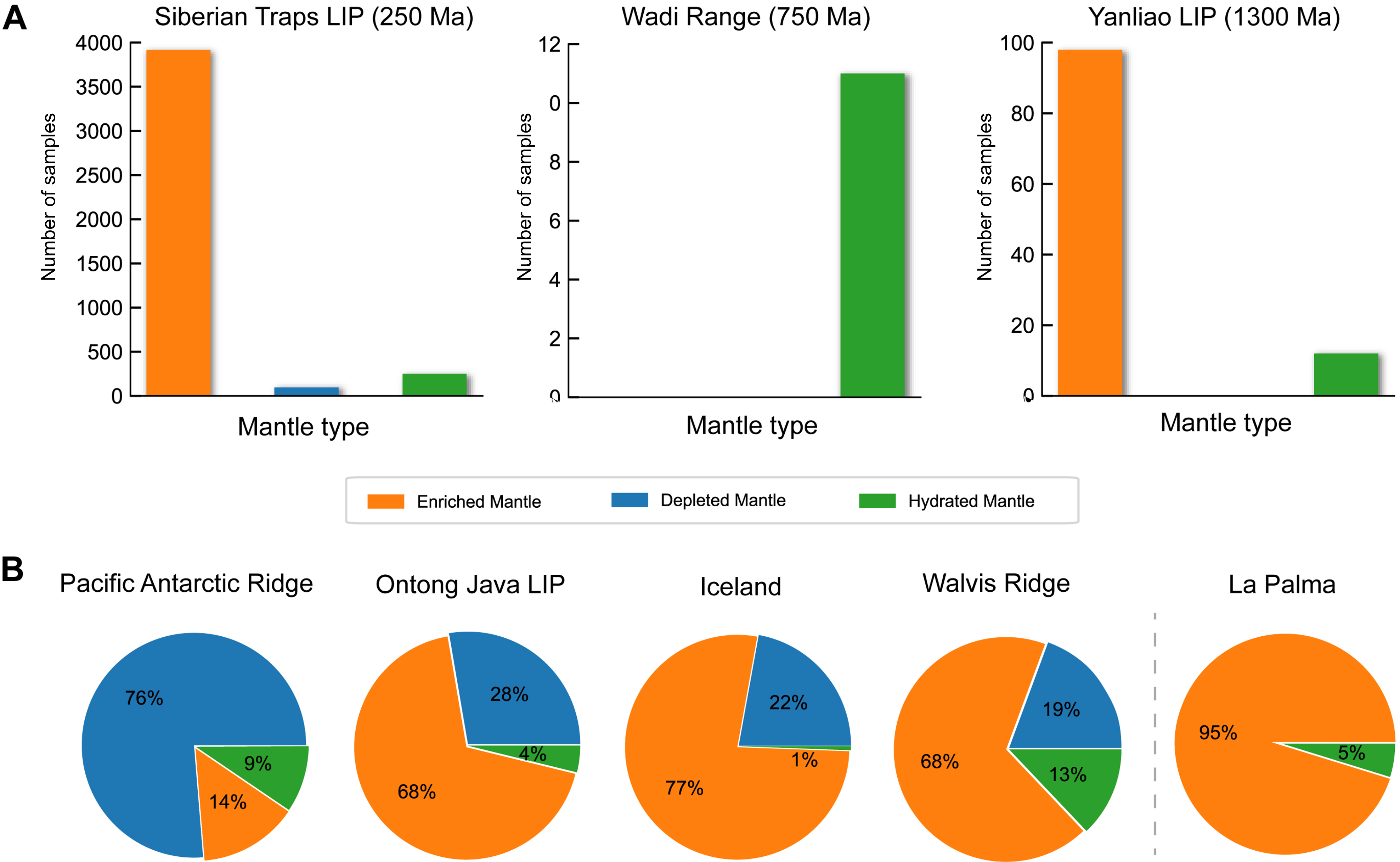 玄武岩作为地幔部分熔融的产物,是研究地球深部过程的关键的地质记录。然而,如何准确识别玄武岩的地幔源区一直是科学家面临的挑战。在前人的研究中,通常使用同位素体系(如Sr-Nd-Pb)和微量元素判别图(如Zr/Nb vs. Nb/Th)来识别地幔端元。然而,随着岩石年龄的增加(特别是大于10亿年),传统判别图的分类区域出现显著重叠,更难以识别古老玄武岩的源区性质。为解决这一问题,中国科学院地质与地球物理研究所的蒋济莲博士,与Ross Mitchell研究员、彭澎研究员、王冲副研究员,以及邹心宇博后实现了玄武岩地幔源区的有效区分。