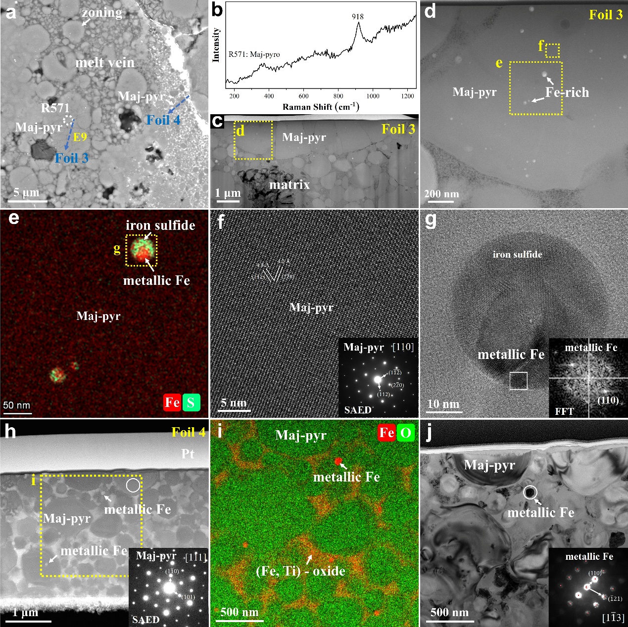 图3 熔脉中的高压相和纳米金属铁