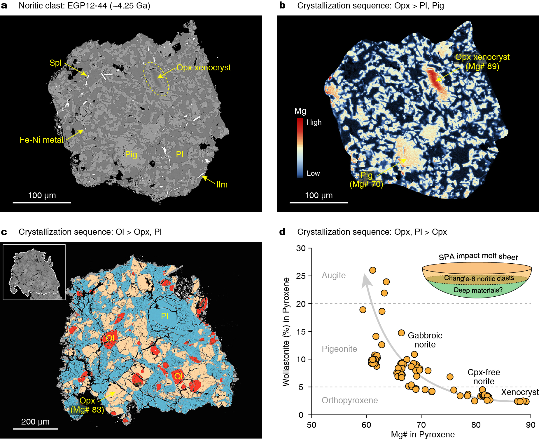 值得一提的是,该工作揭示了SPA撞击时上月幔富集斜方辉石,而非橄榄石或者单斜辉石,说明该大撞击发生之前,月球背面就已经历月幔翻转。这一发现不仅印证了月幔翻转假说,而且进一步佐证了SPA盆地形成于42.5亿年前的结论。嫦娥六号样品忠实记录了这一段关键历史,不仅验证了月幔形成演化假说,更为人类最终揭开月球深部演化的完整历程奠定了坚实基础。