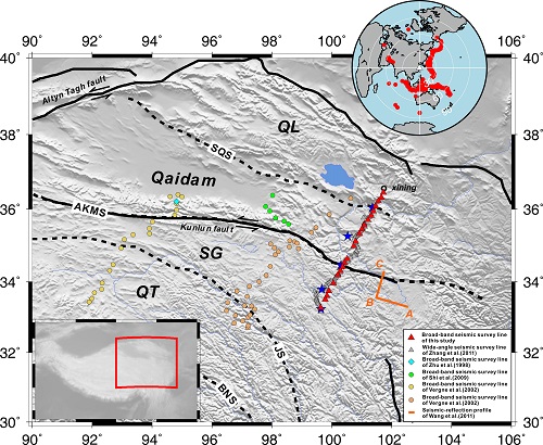 大约50个百万年以来,印度板块与欧亚板块开始完全的陆陆碰撞,印度板块俯冲于青藏高原之下,并持续向北运动,在持续汇聚挤压作用下,青藏高原形成了巨厚的地壳和平均5千米的高原。因青藏高原地域宽广,其主要构造特征表现为南北向的显著差异,为探明深部地壳和岩石圈...