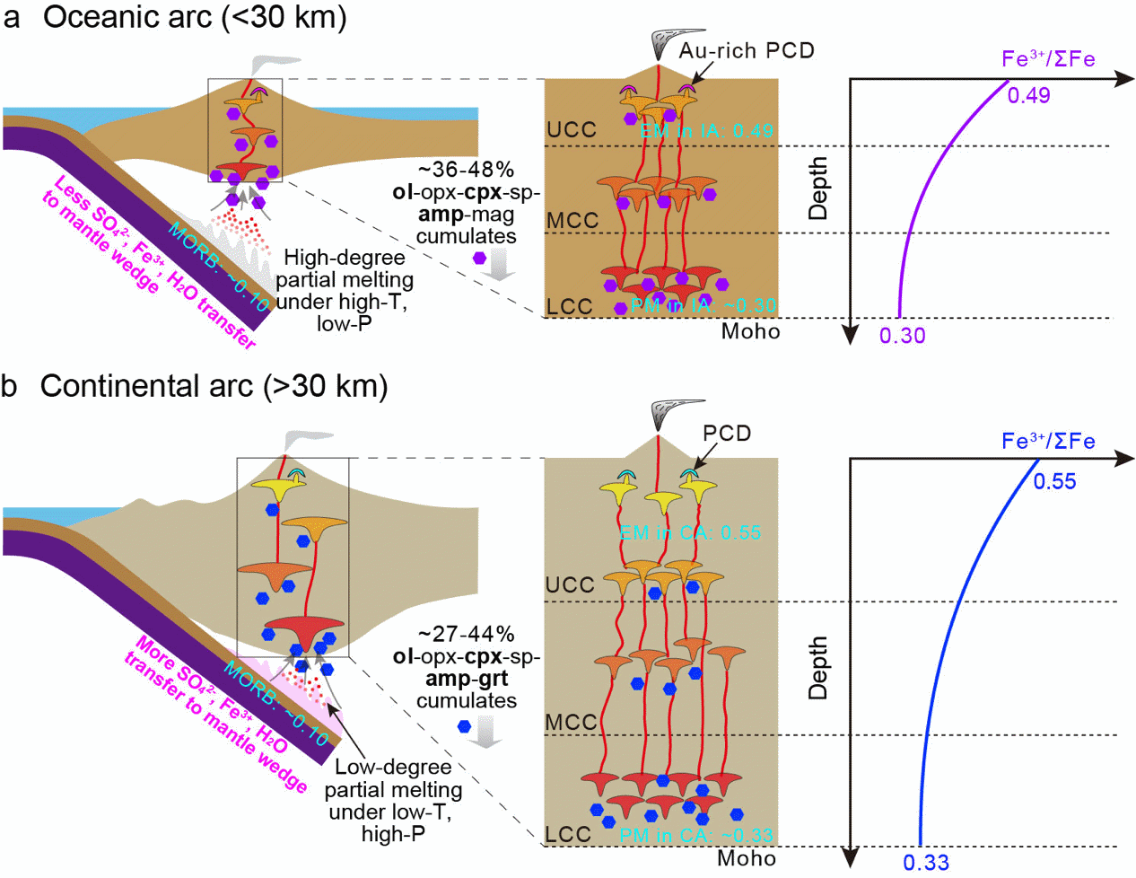 作为地球化学领域中最关键的强度变量之一,氧逸度(fO2)影响着多个重要的地质过程,包括大陆地壳和弧的演化、地幔和大气的氧化还原,以及斑岩矿床的形成。前人大量的研究表明玄武质弧岩浆明显比洋中脊玄武岩(MORB)、弧后盆地玄武岩(BABB)和洋岛玄武岩(OIB)更...
