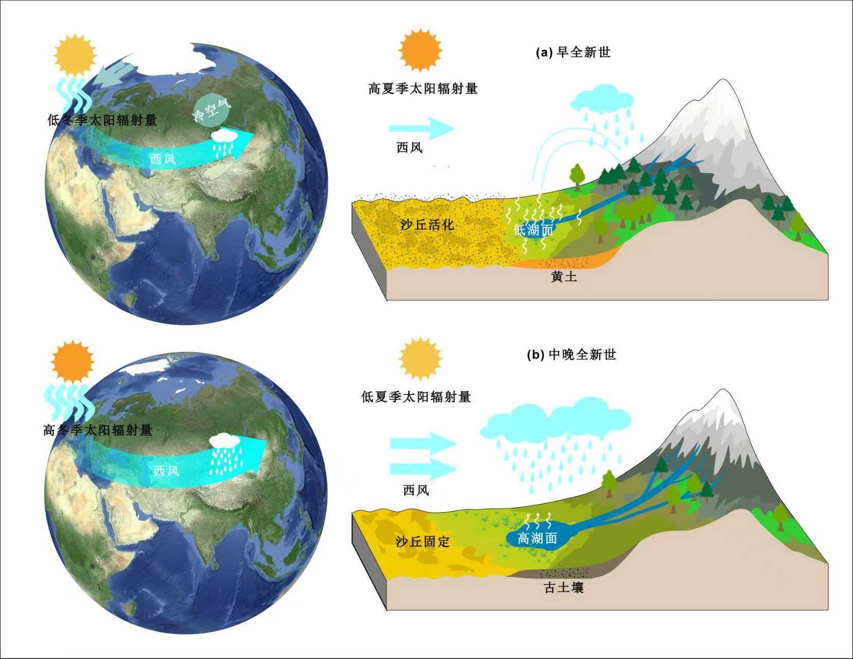 全新世期间中亚干旱区(ACA)湿度变化和沙丘活动耦合过程,对于理解中纬度干旱-半干旱地区水循环系统演化规律及其对文明兴衰的影响具有重要意义。关于ACA全新世湿度演化历史,现有研究存在两种模式:(1)基于沉积记录的研究认为早全新世偏干,中全新世湿润,晚全新...