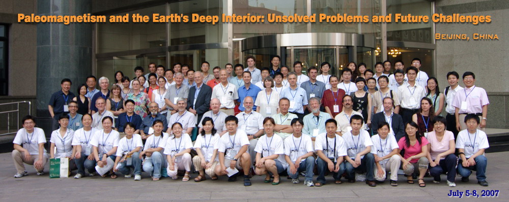 2007年7月4-8日,“古地磁学与地球深部”国际研讨会在北京外国专家大厦顺利举办。此次会议由中国科学院和国家自然科学基金委员会资助,中国科学院地质与地球物理研究所岩石圈演化国家重点实验室主办。会议期间,来自美国、法国、德国、英国、西班牙、荷兰、韩国、日本和中国9个国家的36位知名科学家做了大会口头报告,其中包括法国科学院院士、美国地球物理联合会地磁与古地磁分会(AGU-GP)现任主席V. Courtillot教授、英国皇家学会院士 D. Gubbins教授、美国科学院士G. Schubert教授、中国科学院院士朱日祥研究员、英国Exeter大学张可可教授、AGU-GP前主席K. A. Hoffman教授、AGU-GP前主席L. Tauxe教授、美国明尼苏达大学岩石磁学研究所所长S. K. Banerjee教授。与会人员近百人,中国科技大学、中国地质大学、中国地震局和地质与地球物理研究所等单位的部分科研人员与研究生参加了会议。