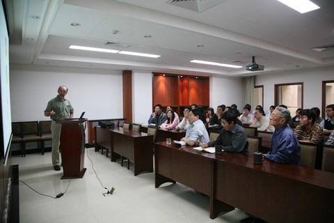 5月14日和16日,Kent院士分别做了题为Tinny wiggles, excursions and cryptochrons: signal or noise in geomagnetic polarity sequence?和Magnetostratigraphy of Late Triassic and Early Jurassic continental strata in the Great Rift Valleys of Pangea的专业学术报告,深入分析了地磁摆动(Tinny wiggle)、地磁漂移(excursion)和隐地磁极性时(cryptochron)等地磁场特征的鉴别及其在地质历史时期地磁场演化中的意义,系统讲述了三叠-侏罗纪全球磁性地层对比、轨道调谐方法在建立中-新生代地磁极性年表中的应用,以及地磁极性倒转、地磁场强度变化与地球内部过程的动力学联系。