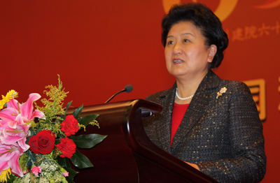 刘延东在讲话中首先代表党中央、国务院向中国科学院成立60周年表示热烈祝贺,并与出席会议的代表共同回顾了中科院的发展历程。刘延东说,中科院诞生于新中国成立仅仅一个月之后,成立至今,一直得到党的三代中央领导集体和以和胡锦涛同志为总书记的党中央的高度重视和大力支持。60年来,中科院没有辜负党和人民的厚爱与重托,在新中国各个历史时期都发挥着科技事业国家队和“火车头”作用,为我国科技进步、经济社会发展和国家安全做出了不可替代的贡献。