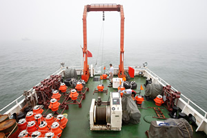 项目组成员在本次海陆联测计划实施中克服了许多困难。计划刚刚开始执行,就面临阴雨天气,使陆上爆破准备工作遭遇很大难度。随后,台风“梅花”在我国东部徘徊移动,由于其行踪不定,调查船不得不多次改变原有计划以躲避台风;海上作业期间,震源船“风斗七号”在克服了气枪、罗经方面的问题后,圆满完成气枪震源的任务。OBS回收期间,海域测线南端(东营港附近)海域又连续大风天气,迫使回收作业中断等多种困难,都没有影响项目组成员高涨的工作热情。8月20日,随着OBS回收船“向阳红8号”胜利返回青岛港,本次海陆联测剖面实施计划圆满结束。至此,以认识渤海地壳深部结构和集成海陆联测关键技术为目的的两条渤海海陆联测剖面(NW向和NE向各一条)均已成功实施,后续的数据处理工作正在紧锣密鼓地展开。
