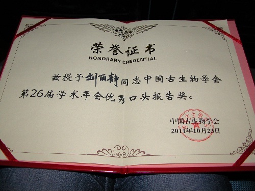 以吴亚生为中心的生物礁古生物学研究学科小组在本次参会中做了很多建设性的工作,在古生态、古地理与古气候分会场,该小组成员做了三个口头报告。其中,刘丽静同学的《四川宣汉盘龙洞礁相P-T界线地层剖面群落演替及其古环境意义》在会场以主题报告进行汇报,得到了与会专家的肯定和支持,会后被优选为优秀口头报告,并最终在大会上获奖。