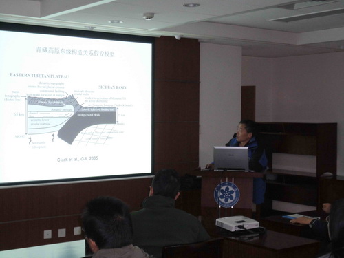 研究室副主任孔屏研究员首先对一年来青藏高原研究室的主要工作做了总结和回顾,对2011年度所取得的荣誉和成绩进行了充分的肯定,并鼓励大家在新的一年里再接再厉,取得更大的成就。付碧宏研究员、白登海研究员、单家增研究员分别作了关于滇西1976年龙陵地震及其动力学机制、青藏高原的生长和塔里木油气藏问题的精彩学术报告。之后,有16位研究人员和研究生围绕青藏高原地学问题做了各具特色的学术报告。具体内容包括高原地震灾害、壳幔形变、地球动力学、岩石学和地球物理方法。王二七研究员、戴福初研究员等与会者针对本领域热点前沿科学问题展开了热烈的讨论和深入的交流。