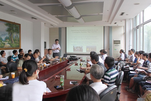 聘任仪式结束后,徐胜教授作了题为《应用原位宇宙成因核素10Be-26Al-36Cl量化侵蚀速率》的学术报告。报告介绍了徐胜教授近期的研究成果,应用加速器质谱仪测定原位宇宙核素10Be-26Al-36Cl并建立计算花岗岩侵蚀速率的模型,同时该方法的地层定年尺度为10Ma,其建立与应用具有重要的地质意义。