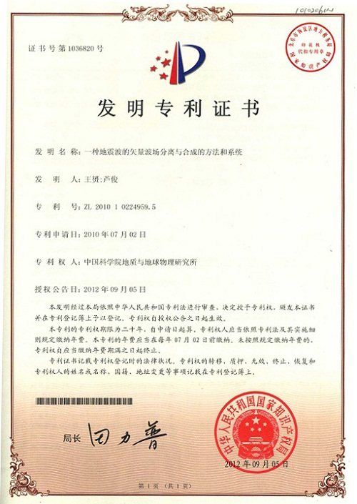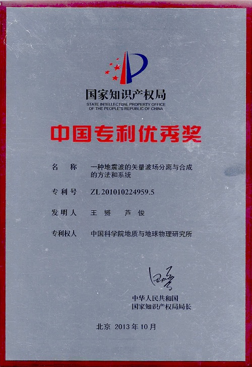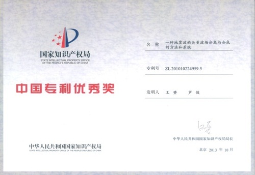 近日,我所收到国家知识产权局颁发的第十五届“中国专利优秀奖”奖牌和证书,该奖是授予我所为唯一专利权人的发明专利“一种地震波的矢量波场分离与合成的方法和系统”(专利号:ZL201010224959.5,发明人:王赟、芦俊),这是我所第一次获得此类奖励。