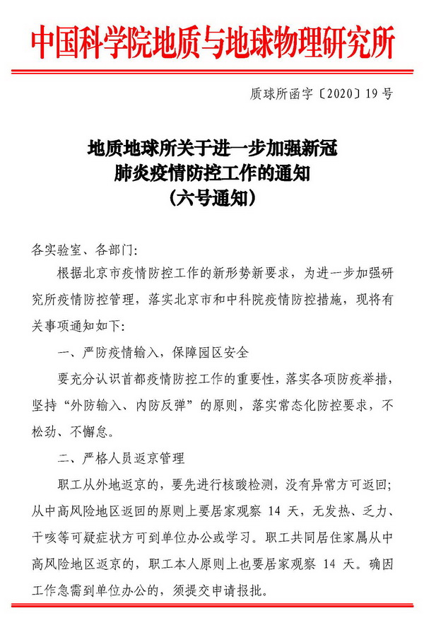 关于进一步加强新冠肺炎疫情防控工作的通知(六号通知)