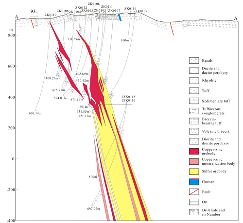 图1 阿舍勒铜锌矿I号勘探线剖面图