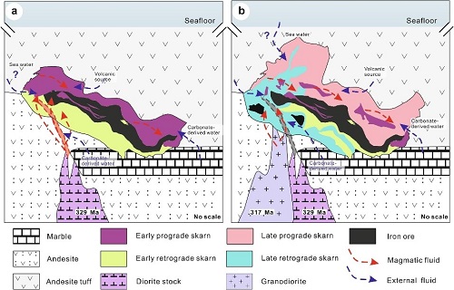 资助课题编号:2017YFC0601201 西天山阿吾拉勒铁矿带是我国北方增生造山成矿系统的重要组成部分,已探明铁资源储量达15.46亿吨,并且含有大比例的富铁矿资源。带内火山岩型铁矿主要赋存于石炭纪火山岩中,普遍发育高温Na-Ca-K质蚀变(矽卡岩化) 。准确厘定矽卡岩化... 查看详细>>>> |