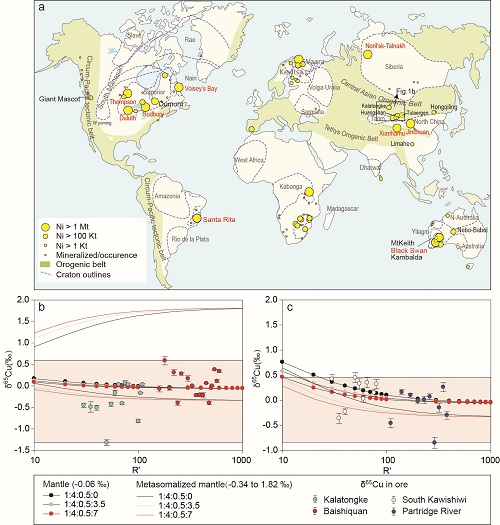 资助课题编号:2017YFC0601204 镍、铜主要来自于岩浆硫化物矿床,通常由幔源岩浆经历特殊的演化过程聚集而成,全球镍储量的40% ,铜储量的~ 10%产自这类矿床。世界级的铜镍矿大多产出于克拉通背景,近年大型造山带型铜镍矿越来越受到学者的关注(图1a ) ,但造山带... 查看详细>>>> |