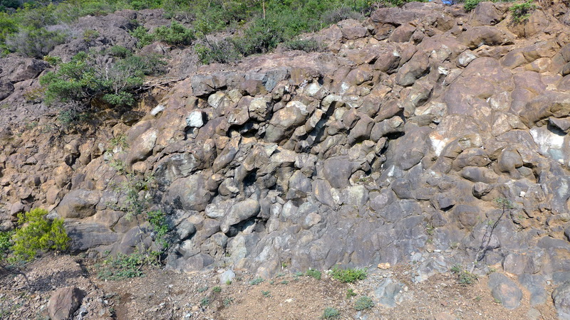 枕状熔岩,是火山在水下喷发形成外表像枕头的特殊构造。成分多以玄武岩为主,通常保存在蛇绿岩中。