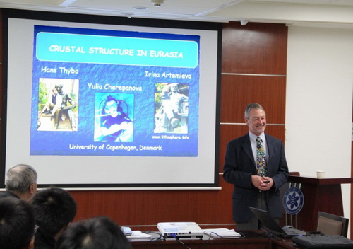 11月24日上午两位教授在地三楼322会议室进行了学术报告会。其中Hans Thybo教授的报告题目为“Crustal structure of Eurasia – relation to its formation and to main tectonic events”,在报告中Thybo教授对他近年来同合作者开展的欧洲大陆及西伯利亚地区的地壳结构研究进行了系统总结。通过综合利用大量的反射地震资料,他们获得了欧洲大陆及西伯利亚地区高分辨率和高精度的地壳结构,同时通过对比分析他们发现克拉通地壳的厚度同其年龄并不存在正相关关系,而同中下地壳的厚度相关性更强,同时提出了通过上地壳和下地壳厚度的比值可以更清晰的区分不同类型的地壳;同时在报告中他还介绍了他的研究团队在贝加尔湖裂谷区开展的宽角反射地震研究工作,对认识贝加尔湖裂谷的形成机制提供了重要观测证据。Irina Artemieva教授的报告题目为“Lithosphere structure of Precambrian cratons from integrated geophysical modeling”,在报告中Artemieva教授也综合回顾了她及其合作者近年来在岩石圈热结构和密度结构研究中的进展。她同时利用大量的大地热流测量数据、地幔捕虏体的地球化学分析结构、高分辨率的重力测量结构作为约束,并采用高分辨率和高精度的地壳模型进行校正,对不同大陆的前寒武克拉通的地幔岩石圈结构进行了模拟研究,结果表明不同区域的克拉通地幔岩石圈结构存在显著差异,要了解不同克拉通的岩石圈结构需要开展针对性研究。所内30多位老师和同学参加了报告会,并就报告主题及相关内容进行了大量提问,两位教授对问题进行了认真的解答,并就前沿疑难问题同诸位老师和同学进行了深入的讨论和交流。
