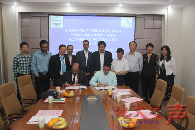 10月17日下午,地质过程与矿产资源国家重点实验室(GPMR)与巴基斯坦国家优秀地学研究中心(NCEG)在校签署合作协议,共同成立特提斯地质与矿产联合实验室。