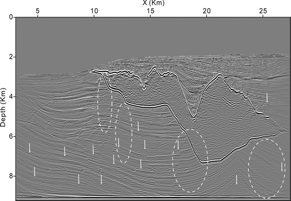 盐丘(subsalt)是地下的高速体,分布广泛,可达几千米到上万米深。盐丘下部是油气藏主要聚集地,深海大型油气田大部分含有盐丘构造。确定盐丘下部断层、圈闭、边界是寻找大型油气田的前提。由于盐丘下部构造非常复杂,地震波在盐丘下部迅速衰减,地震照明度低,其地震成像面临着非常大的挑战。传统的方法从发展Kirchhoff偏移,单程波偏移,逆时偏移,到多波多分量偏移都无法对盐丘下部有效成像。