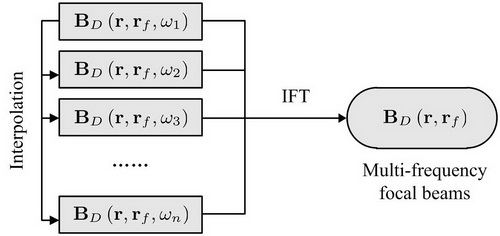 地质与地球物理研究所地球深部结构与过程研究室博士后魏伟与合作导师符力耘研究员对此开展了相关研究。他们提出了一种新的多频率快速聚焦束分析方法,仅需进行少量频率的聚焦束分析,辅以快速的频率插值算法(图1),直接得到多频率聚焦束分析结果。为了进一步提高复杂介质条件下聚焦束分析的效率,该方法结合使用大步长Degenerate Fourier延拓加小步长Born-Kirchhoff插值算法进行波场延拓算法(图2)。国际勘探地球物理学泰斗、荷兰Delft理工大学Berkhout教授认为,该方法以一种巧妙的方式大幅度提高了聚焦束分析的运算效率,增强了聚焦束方法的工业应用价值(见附件Comment by Prof. Berkhout.pdf)。