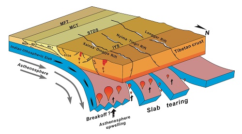 图3 印度岩石圈板片在青藏高原南部下方发生撕裂和断离的动力学模型
