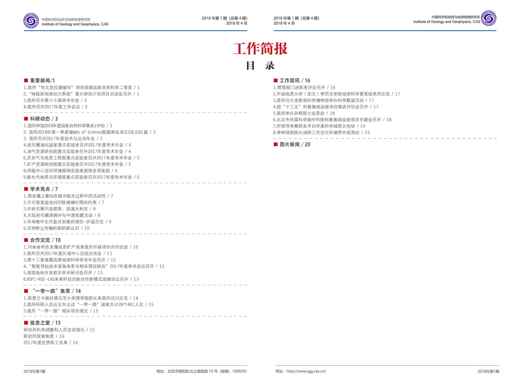 2018年度工作简报 第一期(总第四期)