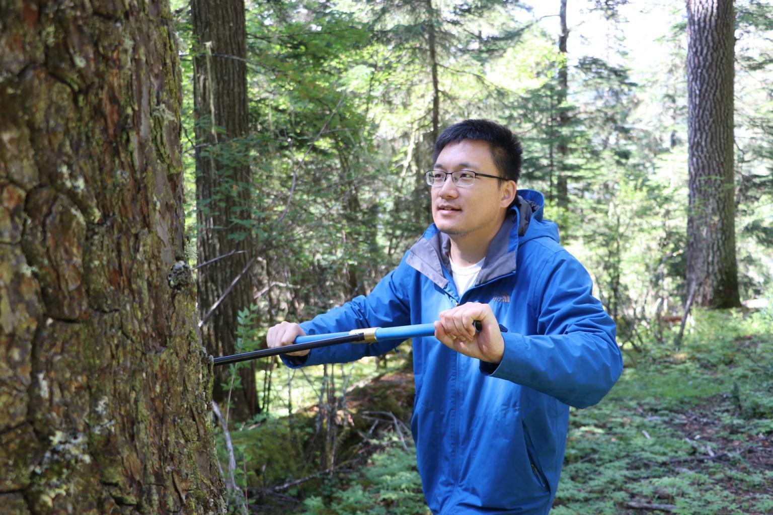 更惊险的一次经历发生在福建长汀,那里广泛分布着许晨曦研究的主要树种——福建柏。由于南方的天气多变,为了取到合格的研究样本,他常常要和天气赛跑。当天,他眼看着乌云飘来,于是加快速度,打算尽快完成采样。没想到,他后背的登山包不慎刮到了旁边的树枝,惊动了一个蜂窝。山里的土蜂凶猛,许晨曦就像被闪电击中了一样,瞬间就从山坡上滚了下来,“头上立刻起了个包,只比拳头小一点,没多久我就发起了高烧。”许晨曦举起手,描述着当时的场景。一起采样的同伴立刻将他救下,带到山下休息,“幸好当晚退了烧,不然真可能会有生命危险。”