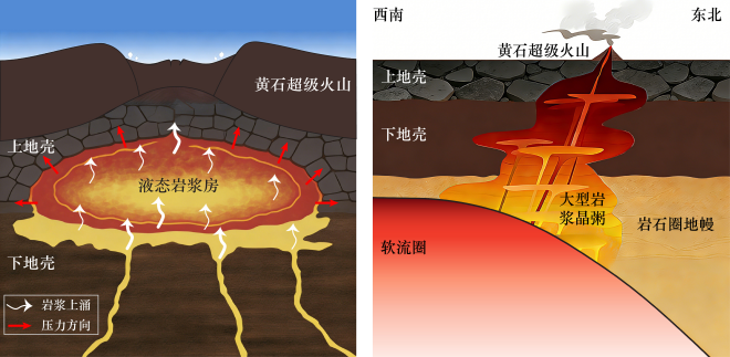 岩石圈是地球最外层的坚硬圈层,其下方的地幔温度较高,粘度较低,在地质时间尺度上可缓慢流动,被称为软流圈。近年研究表明,超级火山的岩浆主要源自部分熔融的软流圈物质,然而其岩浆形成和迁移的内在驱动机制至今仍不清楚,成为当前超级火山机制研究面临的核心问题。