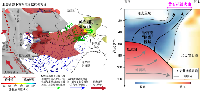 中国科学院地质与地球物理研究所(简称中科院地质地球所)研究团队选取了典型的超级火山——位于北美西部的黄石火山作为研究对象,对当地岩石圈和对流地幔进行了高精度建模,计算相关动力学过程,构建完整的北美西部固体地球系统模型。