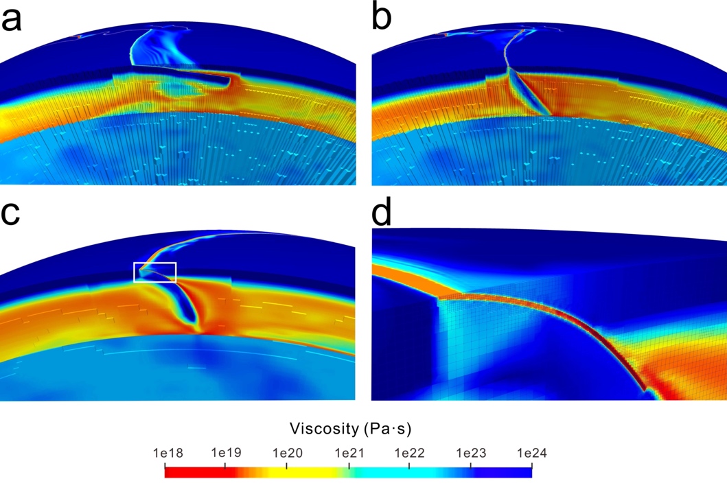 然而,以往的数值模型和物理实验由于受限于简化的模型设置,往往只对单一驱动因素进行讨论,难以在统一框架下对所有驱动力进行系统定量分析,导致目前各个驱动力的相对重要性仍然存在争议。解决这一问题的关键在于,在能够代表真实地球内部结构的模型中,对板块边界力和地幔剪切力进行准确的定量计算。其中,解析俯冲带的板块驱动力和阻力需要在全球模型中实现对千米尺度非线性流变结构的高分辨率模拟,这也是解决这一科学难题所面临的挑战。