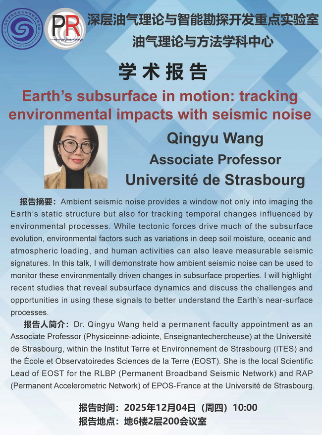 【12.4】油气理论与方法学科中心学术报告:Qingyu Wang 副研究员
