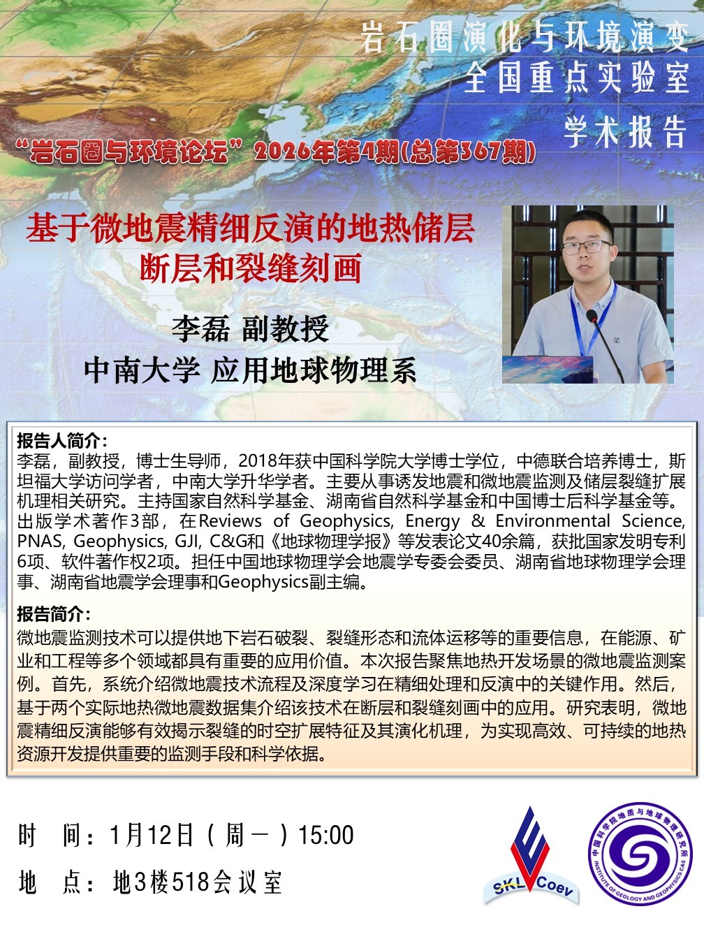 【1.12】岩石圈与环境论坛:李磊 副教授