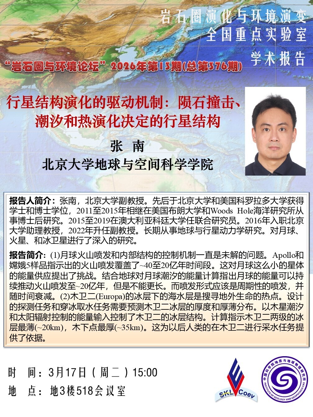 【3.17】岩石圈与环境论坛:张南 副教授