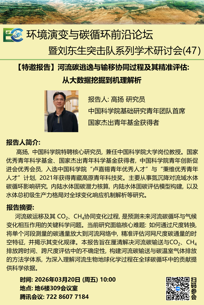 【3.20】环境演变与碳循环前沿论坛暨刘东生突击队系列学术研讨会:高扬 研究员