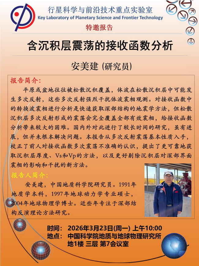 【3.23】行星科学重点实验室特邀报告:安美建 研究员