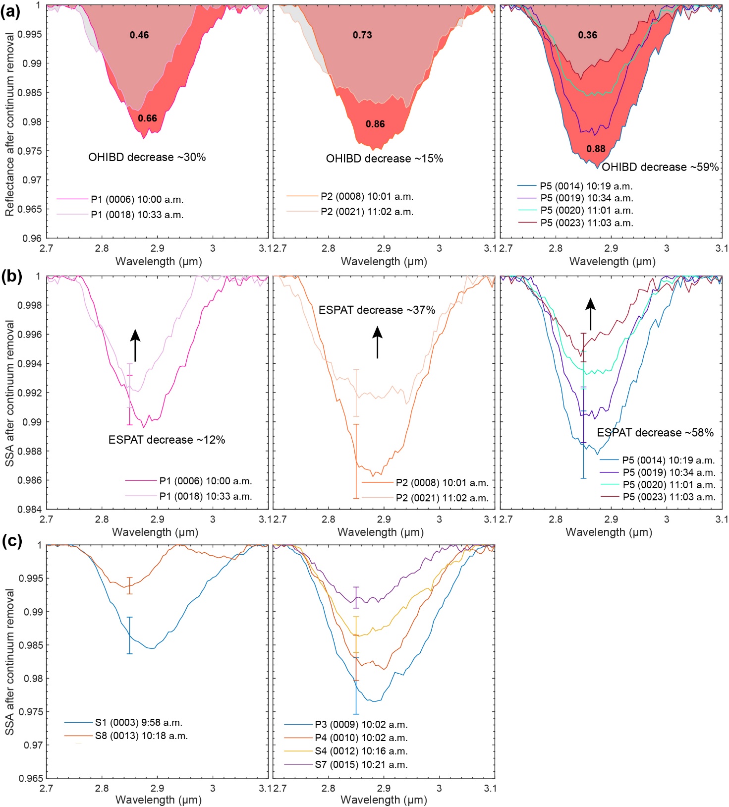 图2 嫦娥六号采样区月壤风化层3微米附近水吸收特征的时间变化规律